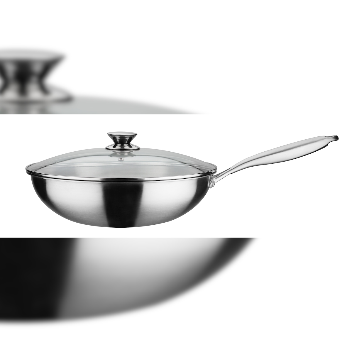 GSW Wok-Pfanne ASIA 32 x 9,0cm mit Glasdeckel, ca. 5,2 L, induktionsgeeignet, backofenfest