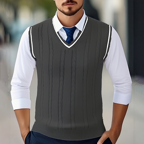 Herren Pullunder Kleid Pullover Pullover Weste Strickpullover Gerippt Zopfmuster Stricken Normale Oberteile Gestrickt Einfach V Ausschnitt Mode Lässig Urlaub Alltagskleidung Bekleidung Herbst Winter