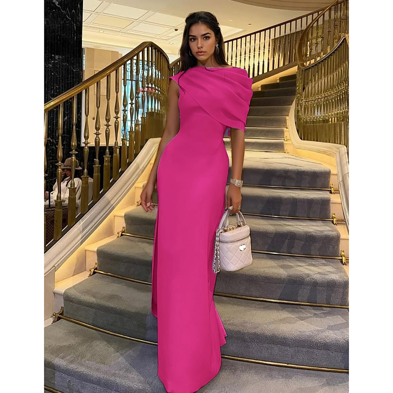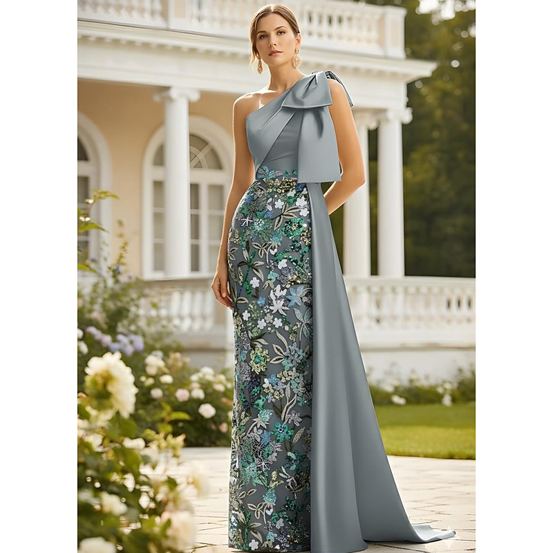 Sheath Column Floor Length Prom Dresses Evening Gown Ball Gown Formal Dress Elegant Short Sleeve One Shoulder Wedding Formal Satin with Bow(s)
