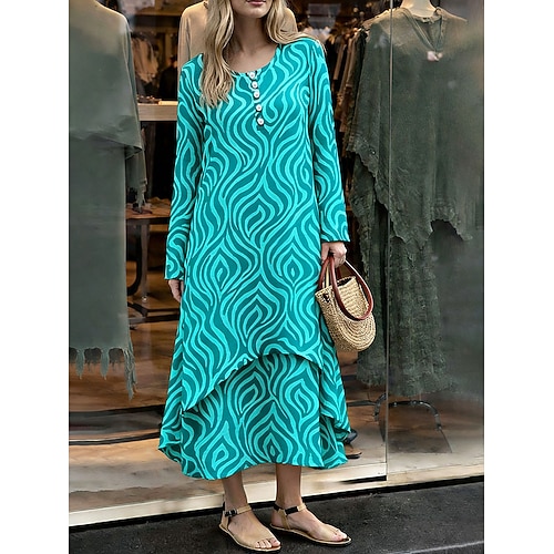 Per donna Abito Midi Abito a Tubino Casual Ferie Vestibilità comoda Grafico Geometrico Manica Lunga Girocollo Blu Giallo Rosa Cachi Primavera Autunno Inverno