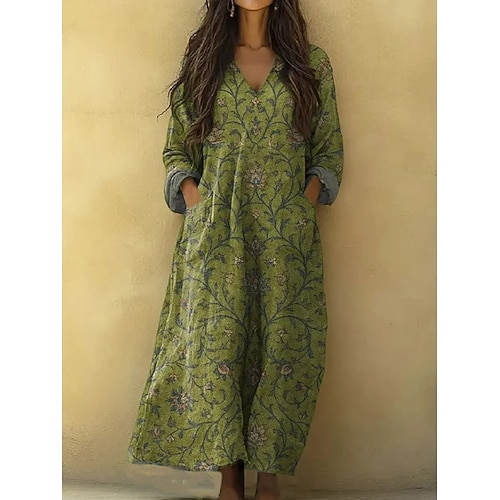 Per donna Abito Midi Abito a Tubino Casual Quotidiano Uscire Vestibilità comoda Floreale Grafico Manica Lunga Scollo a V Rosa Viola Verde Autunno Inverno
