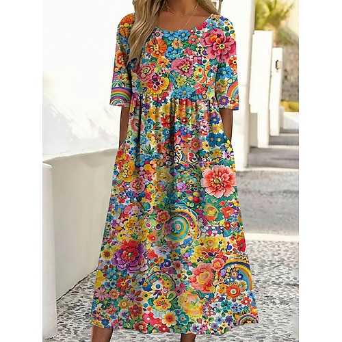 Per donna Abito Midi Vestito Casual Abito Stampato Moda All'aperto Vacanza Uscire Vestibilità comoda Floreale Grafico Manica Corta Girocollo Blu Giallo Chiaro Viola Verde Estate Primavera