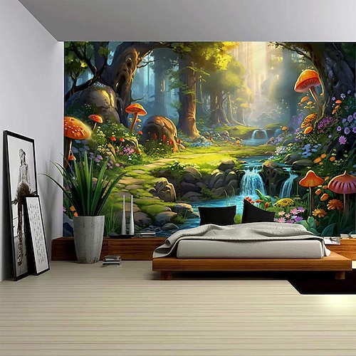 foresta magica paesaggio arazzo da parete arredamento artistico fotografia sfondo coperta tenda da appendere casa camera da letto soggiorno decorazione