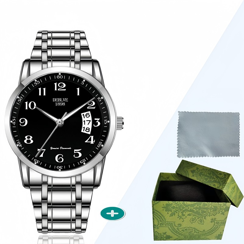 Luxury Men's Quartz Watch Waterproof Stainless Steel Luminous Dial Business Calendar Wristwatch
