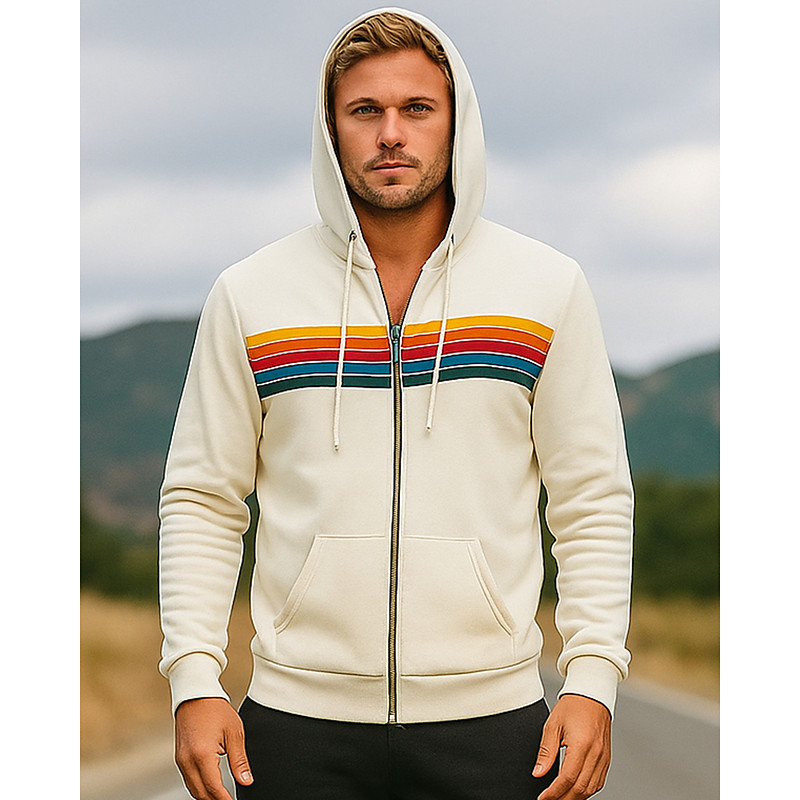 Men's Hoodie Sweatshirt Zip Up Sweatshirt Drawstring Long Sleeve Top Athleisure Stripes Fashion Warm Hiking Travel Vacation Sportswear Activewear Black White Blue