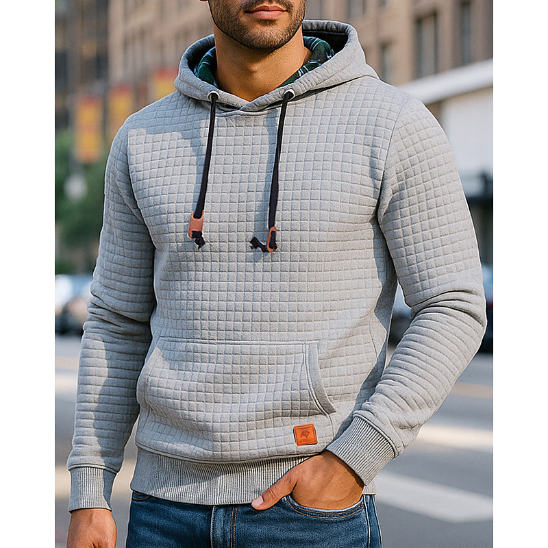 Men's Casual Sweatshirt Pullover Hoodie Jacquard Drawstring Long Sleeve Top Athleisure Fall Solid Colored Outdoor Travel Sports Sportswear Activewear Black White Grey