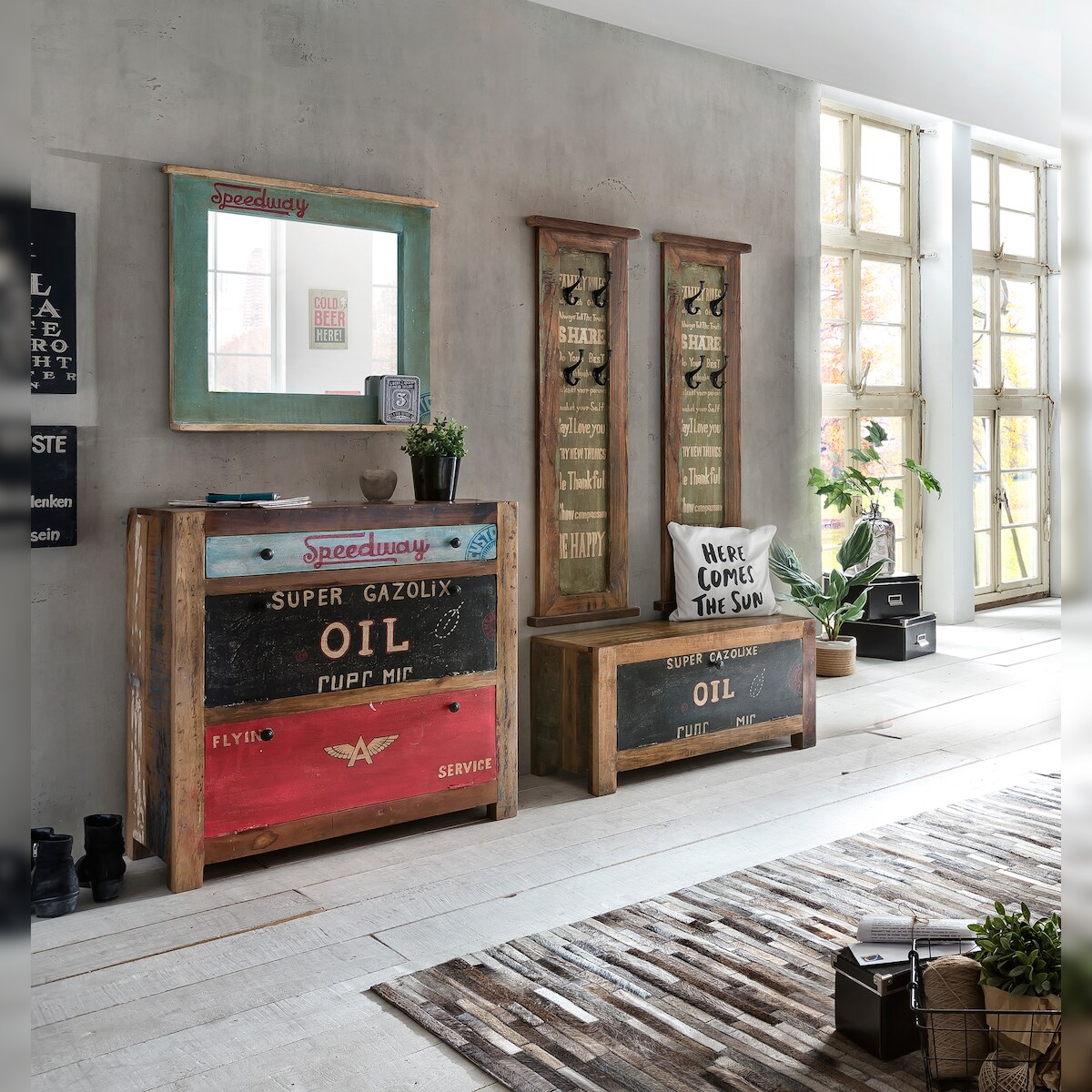 SIT Möbel Dielen-Set 5-tlg. | 2 Schuhschränke, 2 Paneele, 1 Spiegel | Altholz lackiert | natur und bunt | B85xT40xH90 cm | 18000-80 | Serie SPEEDWAY
