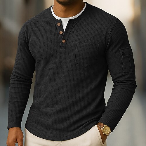Herren Henley Hemd T-Shirt Langarmshirt Langarm Henley Herbst Winter Retro Mode Designer Mode Jahrgang Urlaub Straße Ausgehen Dunkel Braun Marineblau Schwarz Top T-Shirt für Herren