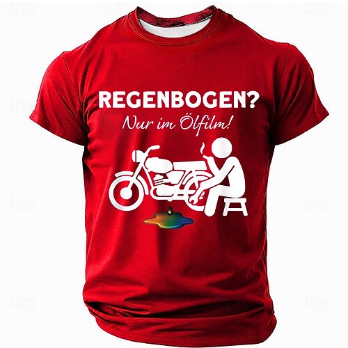 Herren Motorrad Lustiger Slang Deutsch T Shirt Kurzarm T-Shirt 3D-Druck Rundhalsausschnitt Hemd Mode Täglich Straße Täglich Schwarz Rote Blau Sommer Frühling Bekleidung S M L XL XXL XXXL