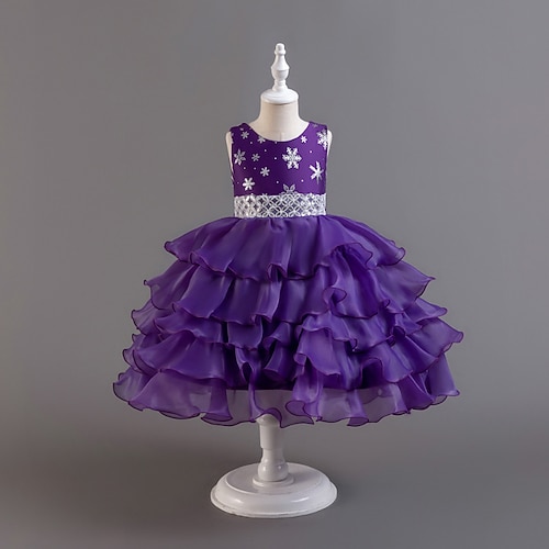 Blumenmädchenkleid Mädchen Formelle Kleidung Hochzeitskleidung Party Hochzeit Weihnachten Mode Niedlich Prinzessin Patchwork Netz Blumen Weihnachten Ärmellos Rundhalsausschnitt Rote Purpur Ab 4 Jahren