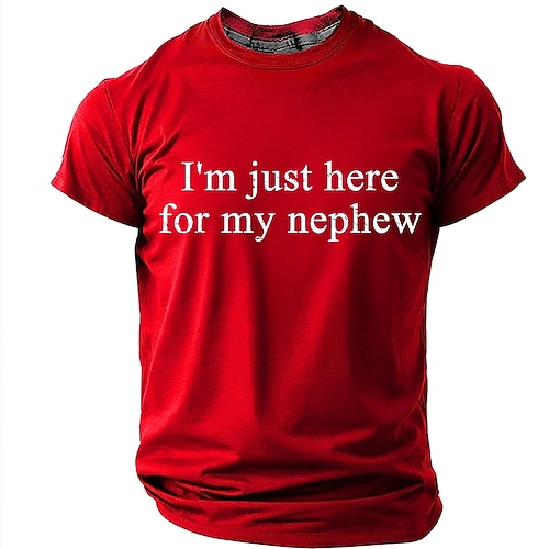 Herren-T-Shirt „Ich bin nur wegen meines Neffen hier" – Stolzer Onkel, Familienunterstützung – Grafik, normale Passform, Sport, Spieltag, Match, Event, Designer-Kleidung, Größen: S, M, L, XL, XXL,