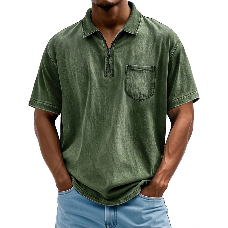 Men's Polo Shirts Quarter Zip Polo Daily Wear Date Quarter Zip Short Sleeve Fashion Basic Plain Zipper Pocket Summer Regular Fit Black Pink Royal Blue Blue Purple Green Polo Shirts