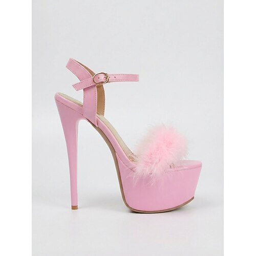 Sandali da donna bianchi con plateau e tacco alto e cinturino in pelliccia, scarpe sexy con tacco a spillo per feste, vita notturna e club. look da sera di grande effetto