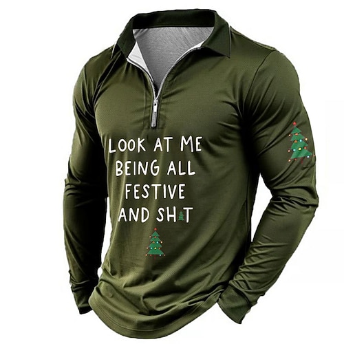 Natale Per uomo Albero di Natale Polo con zip Manica Lunga Magliette polo Colletto Vacanza Abbigliamento da sera Magliette di Capodanno Stampa 3D Primavera Autunno Inverno Blu Nero Rosso