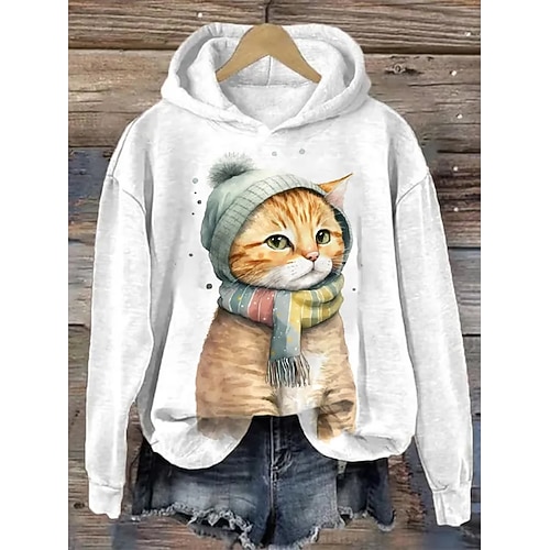 Per donna Felpa con cappuccio Grafico Animale Casual Manica Lunga Scollo a V Con Cappuccio Top Regolari Abbigliamento da sera Streetwear Abbigliamento Quotidiano Blu Nero Bianco Rosa Primavera