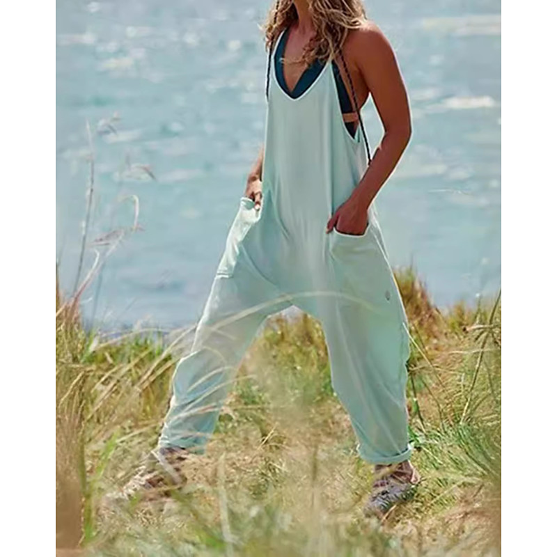 Women's Normal Jumpsuit Casual Solid Color Sleeveless V Neck Pocket Going out Weekend Regular Fit Black Light Green Army Green Summer