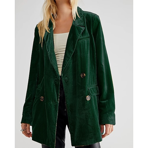 Per donna Blazer Blazer di velluto Confortevole Tasca Bottoni Moda Semplice Feste Festa / Sera Uscire Regolare Collo ripiegato Vestibilità regolare Manica Lunga Capispalla Nero Vino Verde scuro
