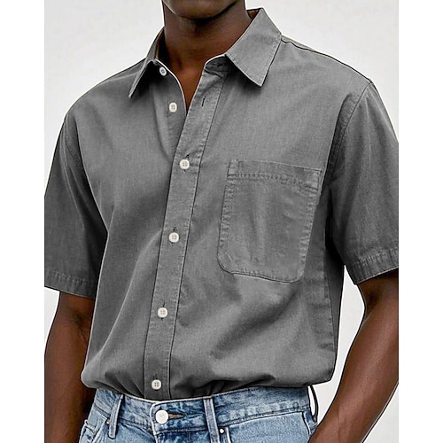 Per uomo Camicia Camicia Estiva Camicia casual Camicia da Spiaggia Camicia con Bottoni Nero Bianco Rosa Vino Blu marino Manica Corta Semplice Bavero Quotidiano Vacanza Tasca Abbigliamento Moda Casual