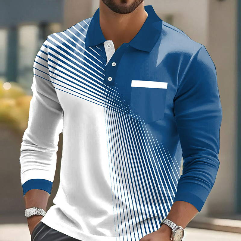 Men's Geometric Polo Long Sleeve Polo Shirts Lapel Casual Business Casual Athleisure Daily Wear Pocket 3D Print Buttons Spring Fall Black Red Blue