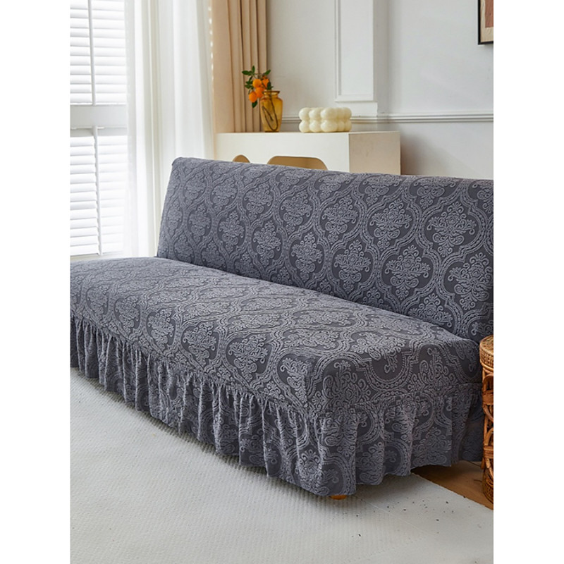 1 Pc High Elasticity Jacquard Velvet Skirt Style Sofa Bed Cover Full Folding Armless Sofa Bed Protector Integrated All-Season Sofa Cover for Living Room Home Use