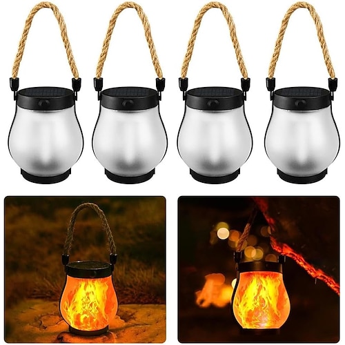 Solar-Flammenlaternen, flackernde Hängeleuchten für den Außenbereich, wasserdicht (IP65), 2 Modi, dualer USB-/Solarbetrieb, automatische Ein-/Ausschaltfunktion für Garten, Hof, Terrasse, Veranda,