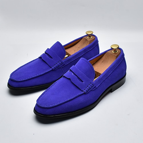 Herren-Loafer aus echtem Leder – stilvolle blaue Slipper aus Rindsleder für Hochzeiten und halbformelle Anlässe