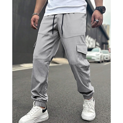 Herren Cargo-Hosen Jogginghose Jogger Hose Kordelzug Elastischer Bund Mehrere Taschen Einfach Winddicht Komfort Täglich Outdoor Campen und Wandern Streetwear Stilvoll Blau Schwarz