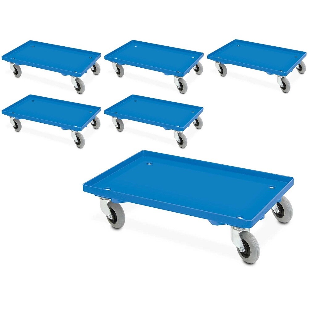 BRB 6x Transportroller mit Flüsterrollen, blau, geschlossenes Deck, für Behälter 600x400 mm oder 2x 400x300 mm