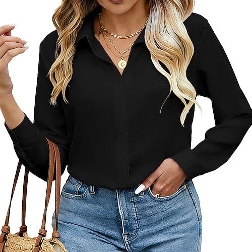Per donna Camicia Camicia button-down Camicia casual Top in chiffon Tinta unica Semplice Elegante Vacanza Moda Manica Lunga Collo ripiegato Top Regolari Quotidiano Ferie Uscire Blu Nero Bianco Giallo