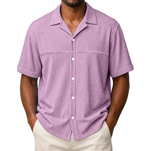Per uomo Camicia Camicia button-down Camicia di Velluto a Coste Blu Nero Bianco Rosso Blu marino scuro Manica Corta Semplice Bavero Quotidiano All'aperto Bottoni Abbigliamento Streetwear Casual