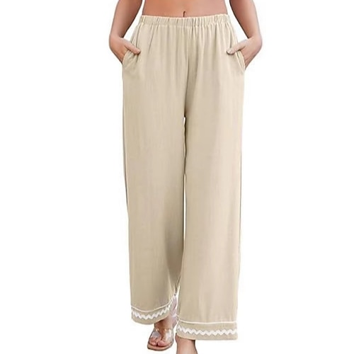 Damen Kunstbaumwollleinen Sommerhose Strandhose Urlaub Streetwear Lässig Volle Länge Mittlere Taillenlinie Blumen Tasche Bequem Unelastisch Täglich Outdoor Schwarz 1 # Weiß Rote Grün Sommer Frühling