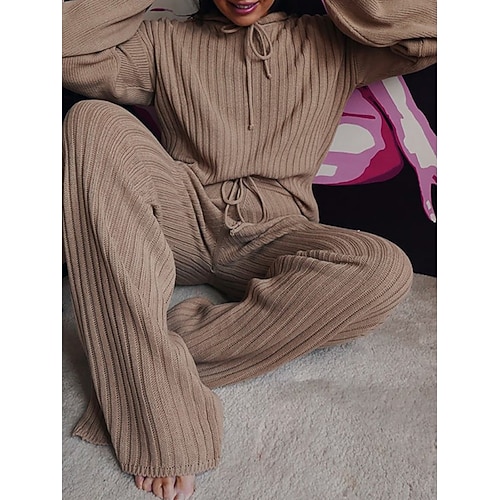 Per donna Moda Streetwear Set di Pantaloni Bolero Top Manica Lunga Con Cappuccio Tinta unica All'aperto Casuale Quotidiano Nero Rosa Rosso Autunno Vestibilità regolare