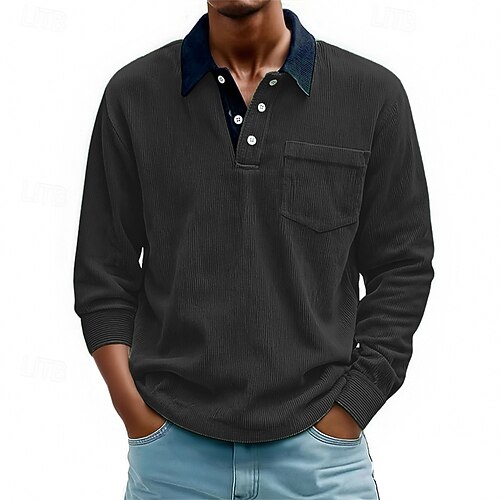 Per uomo Camicia di Velluto a Coste Maglia da golf Lavoro Casuale Bavero Manica Lunga Essenziale Moderno Blocco di colori Bottoni Tasca Frontale Primavera Autunno Vestibilità regolare Nero Bianco