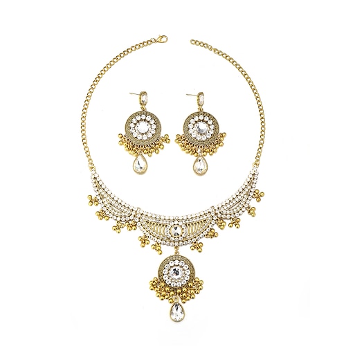 elegante collana girocollo di perle e cristalli con orecchini coordinati, disponibile in più colori (rosso, blu, rosa, nero, bianco)