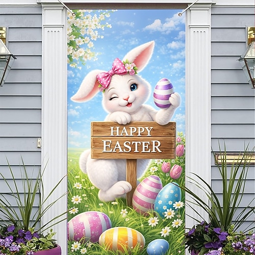 Copriporta a forma di coniglietto pasquale con scritta buona Pasqua, decorazione primaverile colorata piena di uova, perfetta per ingressi festivi e decorazioni per porte in occasione delle