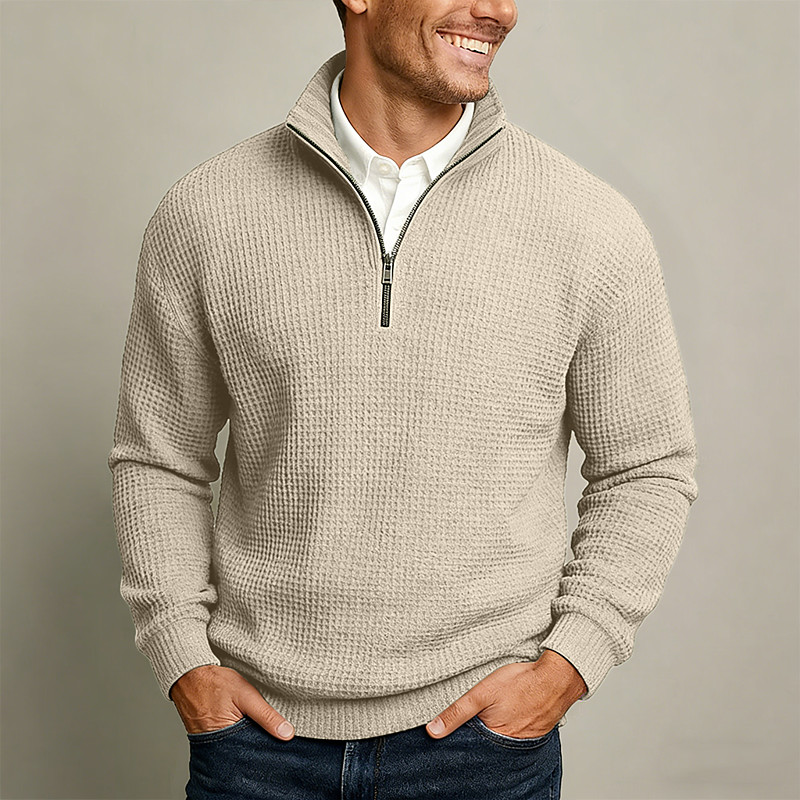 Men's Waffle Polo Shirts Textured Casual Quarter Zip Long Sleeve Fashion Modern Solid Color Textured Knitted Fall Spring Fall Fall Winter Regular Fit White Light Green Navy Blue Dark Green Khaki