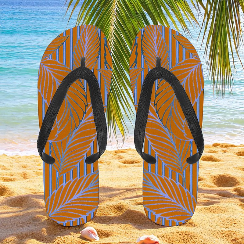 Men's Blue Leaf Printed Flip Flops – Tropical Stylish Style for Beach Vacations, Island Hopping Beachside Dinners