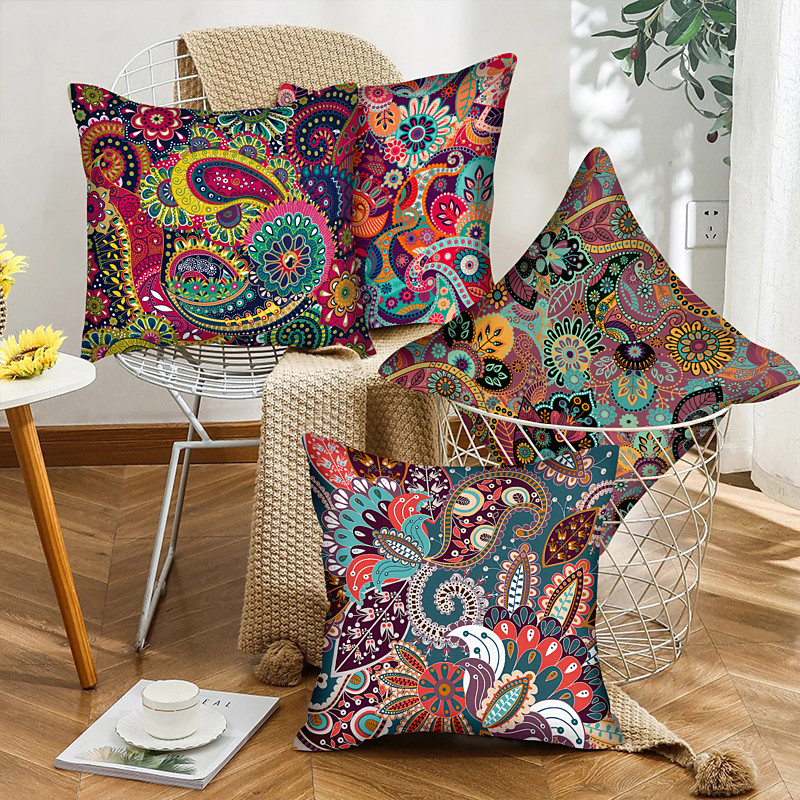 Paisely Double Side Cushion Cover 4PC Soft Decorative Square Throw Pillow Cover Cushion Case Pillowcase for Sofa Bedroom Superior Quality Mashine Washable