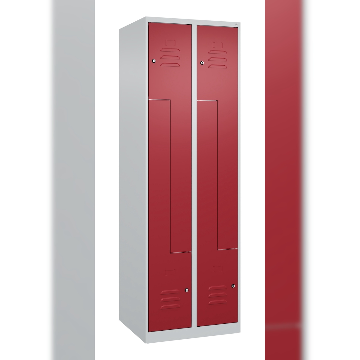 C+P Z-Spind Classic PLUS bodenstehend, 4 Abteile, HxBxT 185x60x50cm, Zylinderschloss, Hellgrau/Rubinrot von PROREGAL