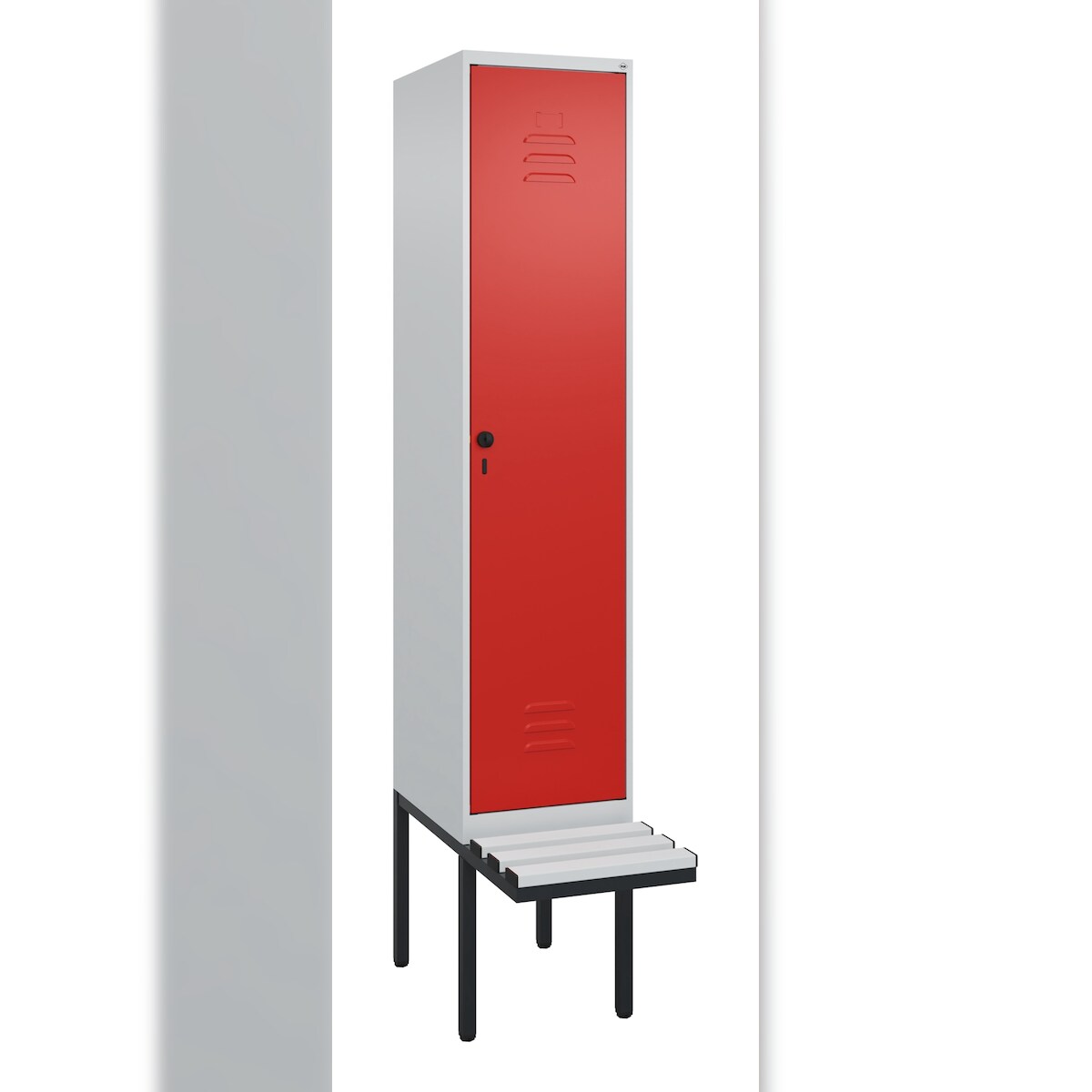 C+P Spind Classic PLUS, Kunststoff schwebende Sitzbank, 1 Abteil, HxBxT 212x40x82cm, Sicherheitsdrehriegel, Hellgrau/Rot von PROREGAL