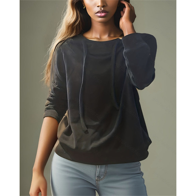 Women's Blouse Dressy Tops Solid Color Plain Elegant Vintage Tropical Long Sleeve Hooded Regular Tops Work Daily Holiday Ruched Patchwork Black Fall Winter