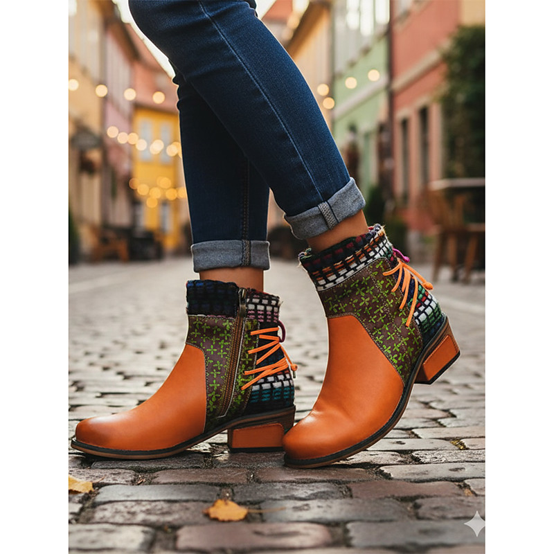 Women's Bohemian Green Ankle Boots - Handmade with Ethnic Patterns, Perfect for Festival Daily Wear
