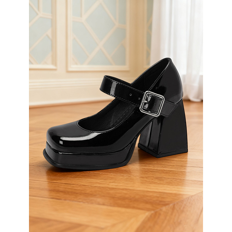 Women's Burgundy Patent Faux Leather Mary Jane Pumps – Chunky Block Heel with Adjustable Strap,Perfect for Valentine's Day, Daily and Party Wear