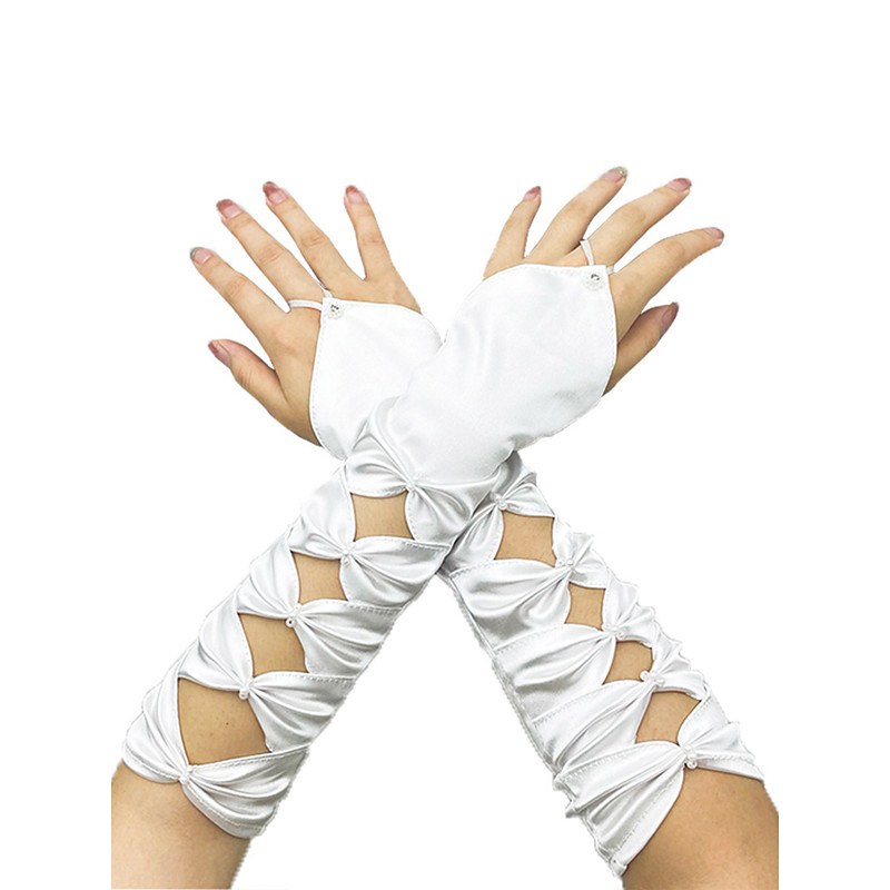 Women's Polyester Satin Gloves in Multiple Colors, Elegant Design with Beaded Detailing, Perfect for Carnival and Masquerade Balls