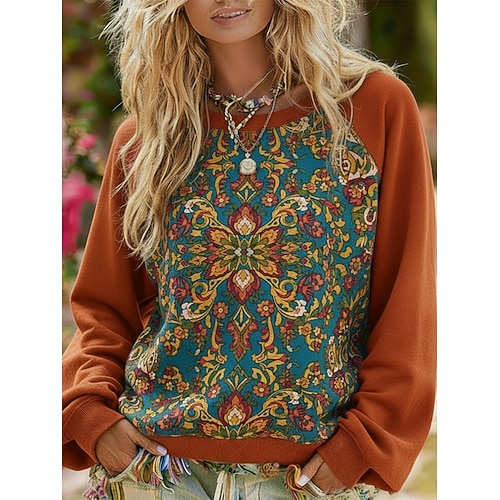 Per donna Pullover Felpe Floreale Grafico Vintage Streetwear Manica Lunga Girocollo Top Regolari Abbigliamento Quotidiano Casuale Stampato Vino Viola Arancione Verde Primavera Autunno