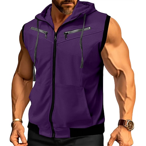 Per uomo Felpa con cappuccio Felpa con cappuccio a zip intera Nero Vino Rosso Blu marino Viola Con Cappuccio Blocco di colori Coulisse Tasca Sport Outdoor Quotidiano Ferie Poliestere Streetwear