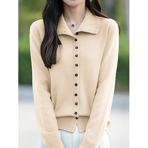Per donna Felpa Cardigan Elegante Moda Streetwear Colore Puro Dolcevita Bottoni Lavorato a maglia Manica Lunga Top Regolari Maglia All'aperto Quotidiano Weekend Vino Cammello Autunno Inverno