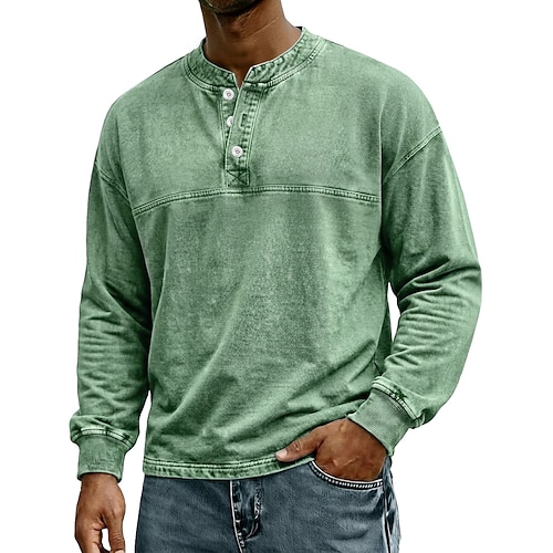Per uomo Maglia Henley Camicia 100% cotone lavaggio acido Maglietta Manica Lunga Semplice Vintage Retrò Vintage Casual Tasca Grafico Henley Casuale Primavera Autunno Tutte le stagioni Nero Rosa Verde