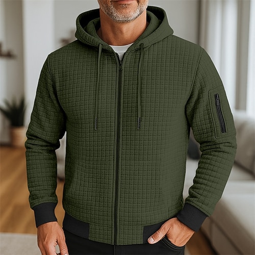 Herren Kapuzensweatshirt Vollreißverschluss-Kapuzensweatshirt Waffle Kapuzensweatshirt Weinrot Schwarz Weiß Armeegrün Marineblau Mit Kapuze Einfach Reißverschluss Strukturiert Sport Outdoor Lässig