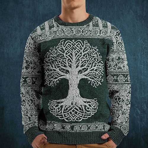 Per uomo Vichingo Albero della vita Maglione Maglieria Girocollo Retrò Vintage Casual Vacanza Quotidiano Stampa 3D Lavoro a maglia Tenere al caldo Manica Lunga Primavera Autunno Inverno Nero Marrone